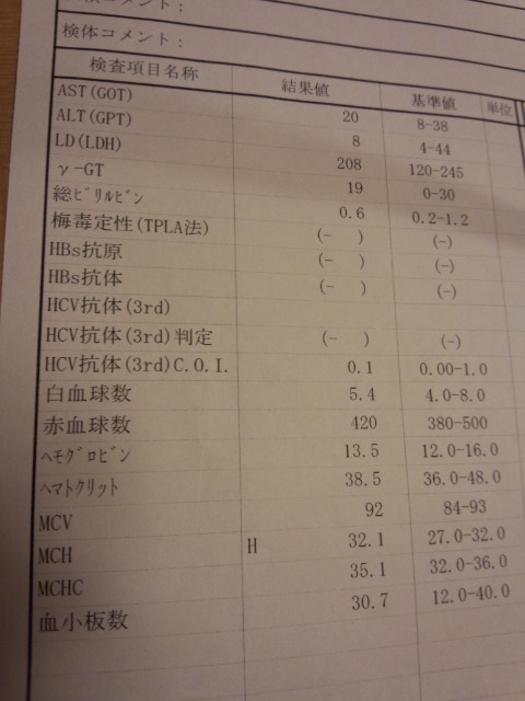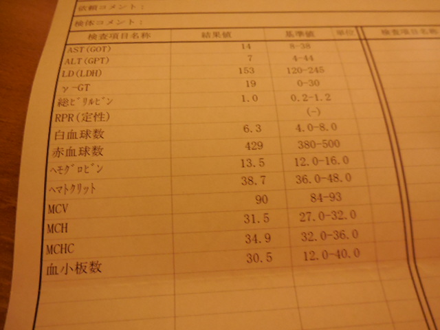 前回は、検査前日に酒をしこたま呑み、二日酔い状態で受けた血液検査でしたが、結果はほぼ正常値^^ 私の肝臓万歳!!