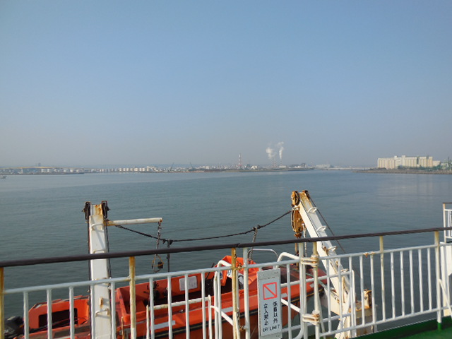 朝、風を浴びにデッキへ。お天気に恵まれました!八戸はすぐそこに