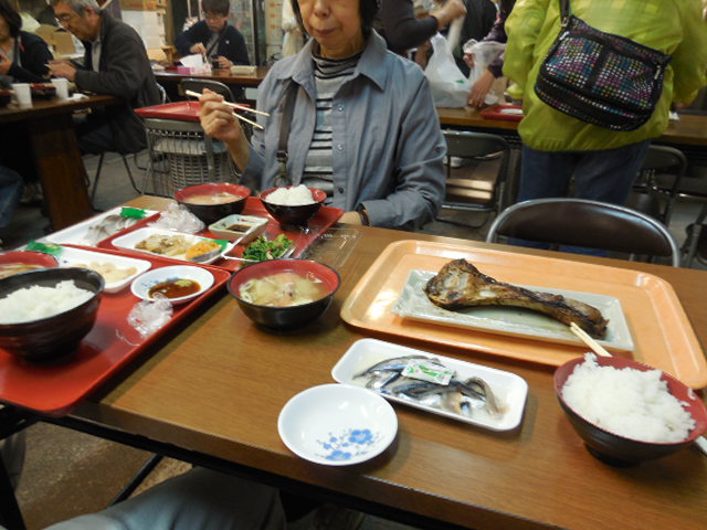 市場で買ったものを、その場で食べられます。早朝なのに凄い人・・・さすがGW!