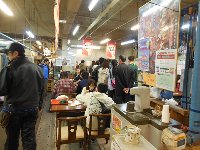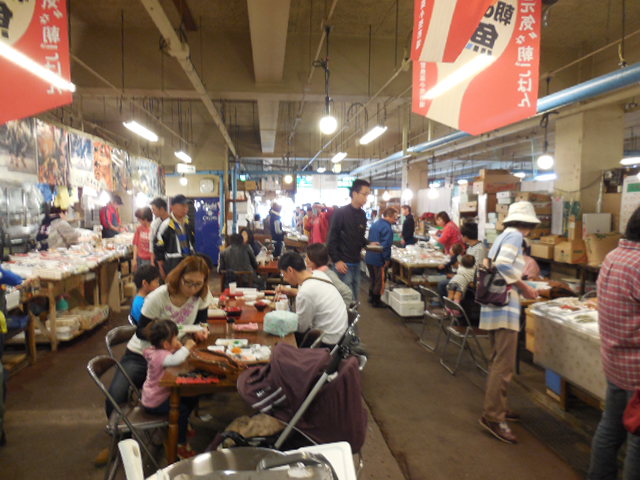 早速腹ごしらえ!お腹空いた〜って事で、八戸市の陸奥湊駅朝市へレッツゴー!