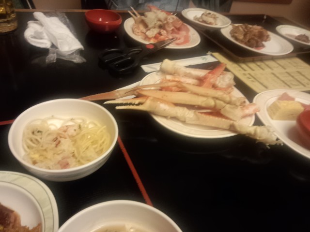 ズワイガニにタラバガニに毛ガニと、三大蟹が食べ放題。ビュッフェ方式で、自分で作るオリジナル海鮮丼や、シェフが目の前で焼いてくれるステーキなんかもありましたよ