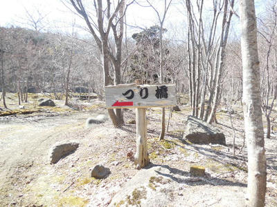 (ちょっと見づらい写真ですね;写真右側の白い道が、あの恐怖の吊り橋です)