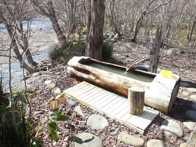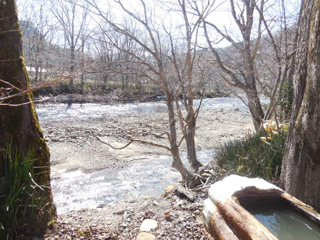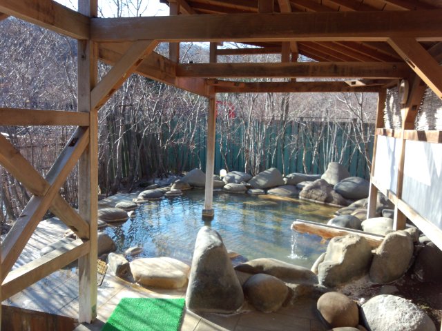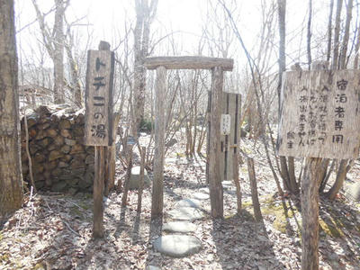 到着後はすぐにトコ母と野天風呂へ・・・一番遠いトチニの湯を目指します。銀婚湯の数ある野天風呂の中でも、一番濃い源泉が出ているそうです。湯札を貰ってレッツゴー!!