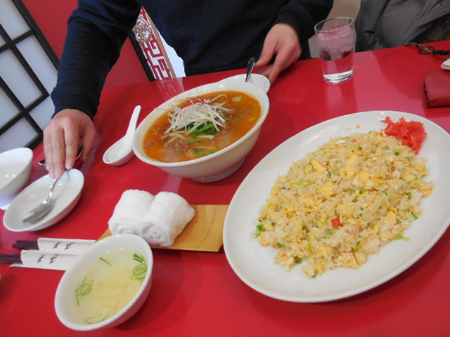 旦那さんは担々麺をご希望ですが、それだけでは足りなさそうなので、ハーフの炒飯を別途注文です。