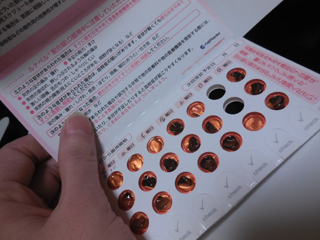 で、飲み始めて12日目くらい(ピル飲んでいなきゃ排卵日)から不正出血がありました。これは1週間程続きましたが、現在は治まっています。出血と言っても、茶色いオリモノが少量続くような感じ。これは、ピルを飲み始めには良くある事らしいですね。あと、乳房の張りもありましたが、これも生理前のmax時と比較するとさほど強くは感じません。これは今現在、徐々に軽減されてます。