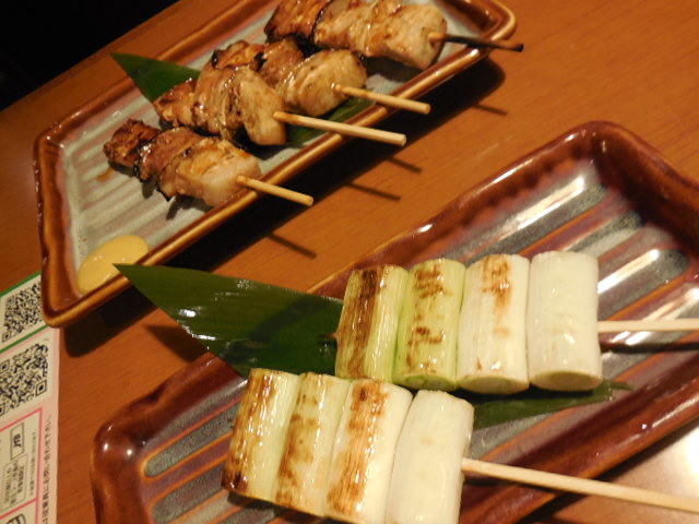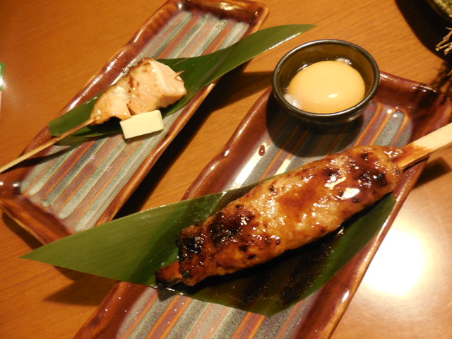 つくねとか、炙りサーモン串とか、ごま塩レバー串とか。