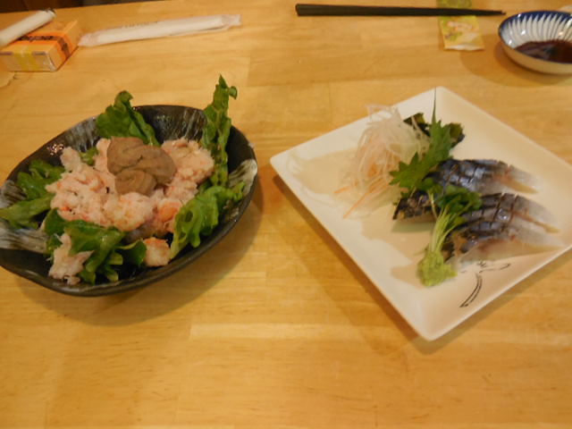 爆弾かにバラ味噌盛りと、自家製しめ鯖。