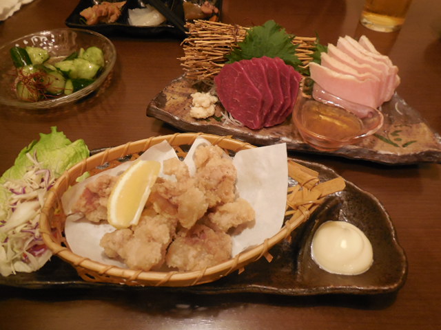 ホルモンの唐揚げに、馬刺や鶏むね肉タタキ刺し