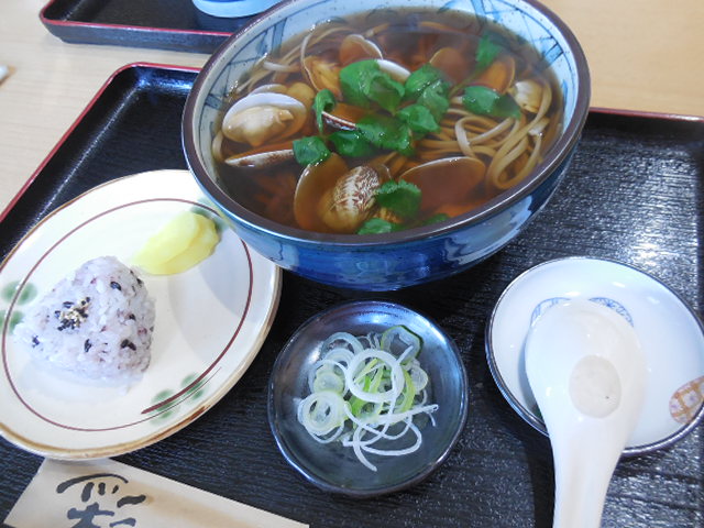 トコのあさりと三つ葉そば!雑穀米のミニおにぎり付きです^^