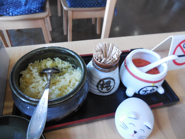 テーブル横には、天かすと一味。セルフ天かすを置いてあるお店って、あまり無いですよね。