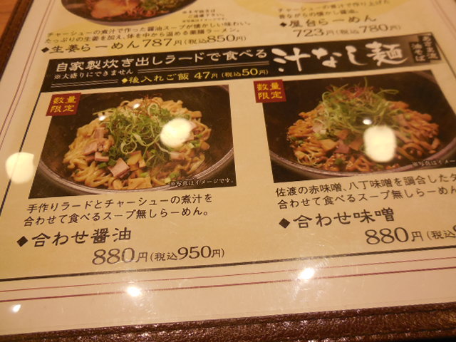 トコは、汁なし麺の合わせ正油、旦那さんはコク味噌とチャーハンのセットで。クーポンでドリンク一杯サービスして貰いました^^