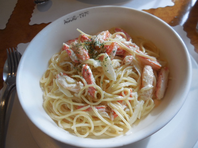 女の子二人でとかなら、パスタ一人前を二人で、あとちょっとサイドメニューを食べる位で丁度良い位かも?