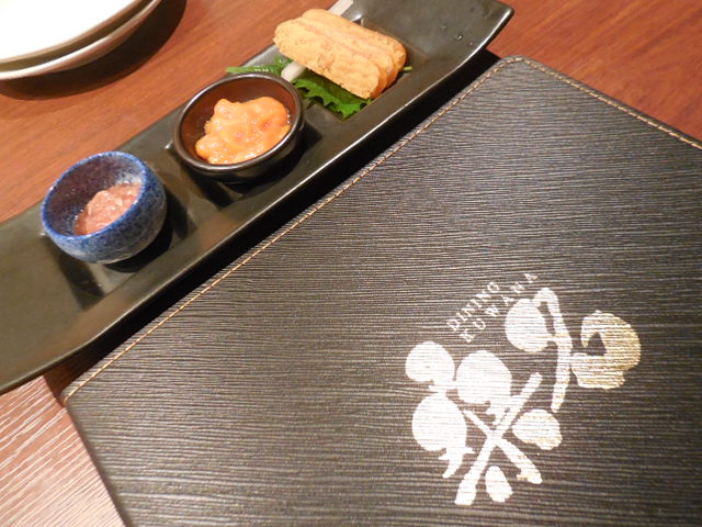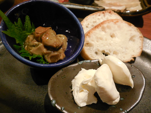 珍味3点盛をつまみながら、はまぐりが焼けるのを待ちます