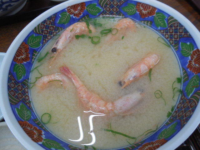 食べログのクーポンで、お味噌汁が海老汁に無料でバージョンアップしました