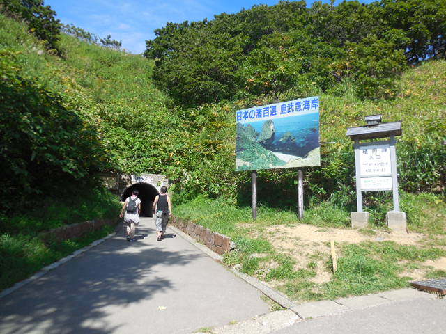 手前の島武意海岸へのトンネルへ。